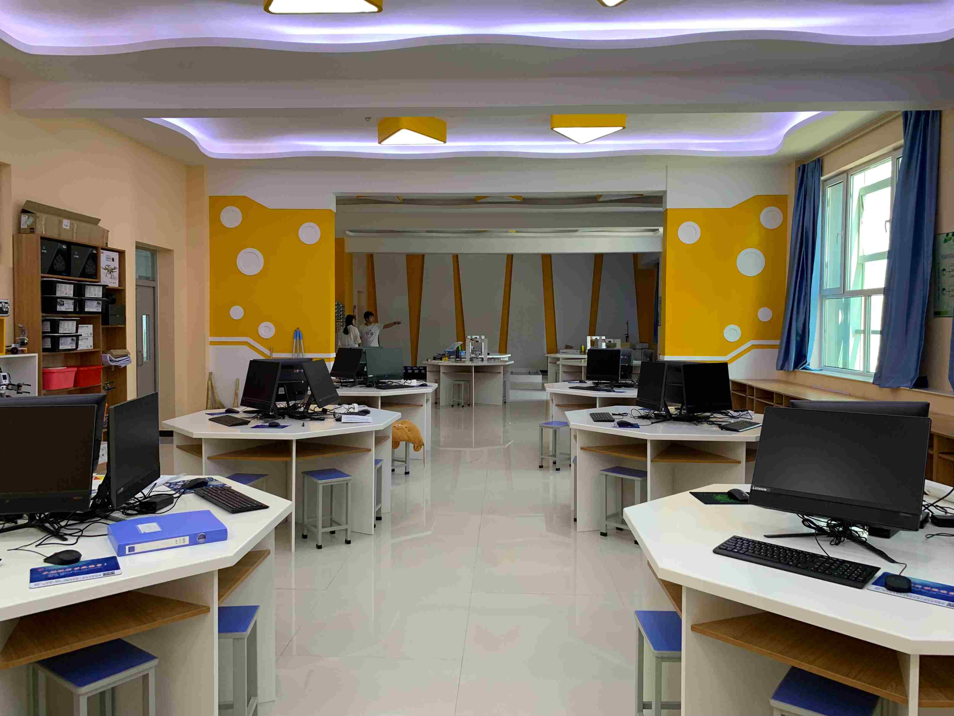 阿斑兔將機(jī)器人、創(chuàng)客、3D打印、航模等融為一體,研發(fā)、設(shè)計(jì)具有情景體驗(yàn)、創(chuàng)意生成、原型制作、展示交流等多功能為一體的機(jī)器人教育教學(xué)場所,即創(chuàng)新教育實(shí)驗(yàn)室,針對不同年齡段學(xué)生的特點(diǎn)、學(xué)校學(xué)情等,為其提供足夠的空間、設(shè)備和完善的課程體系。